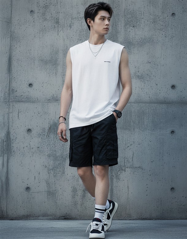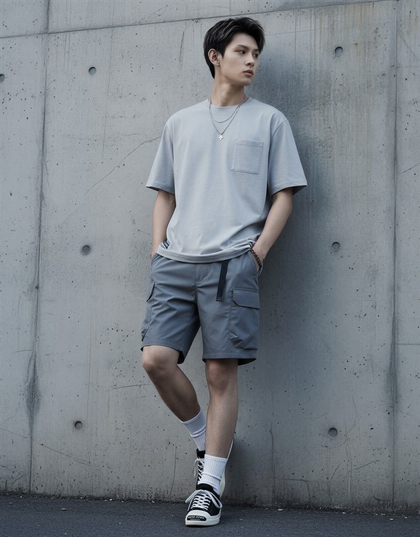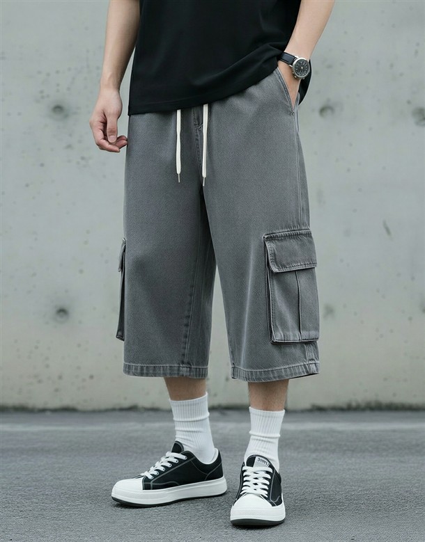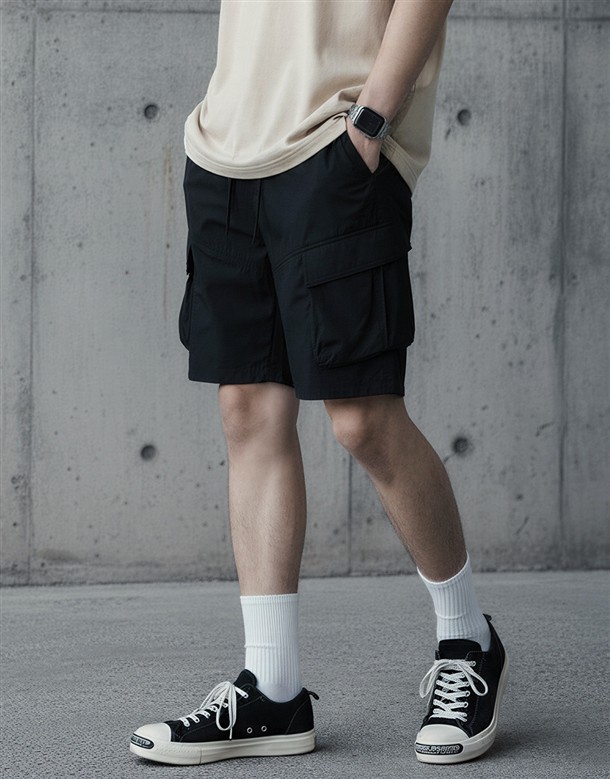 斜口貼袋工裝短褲