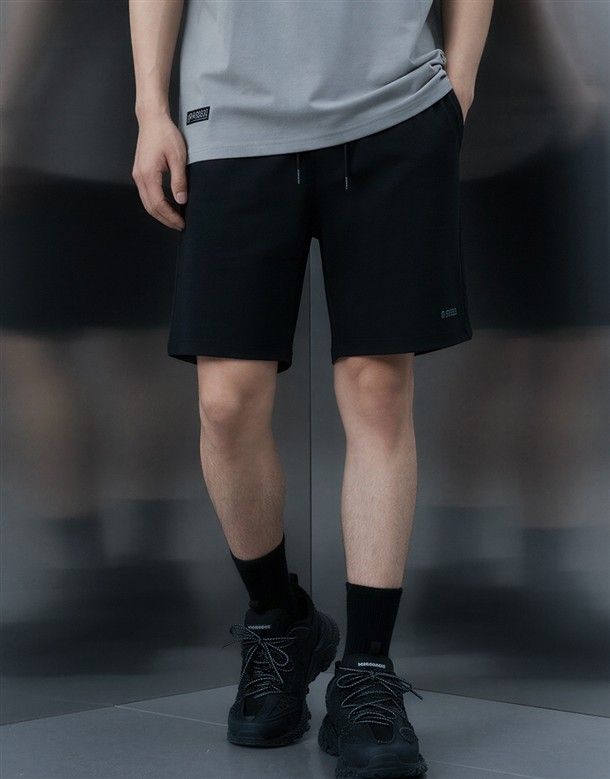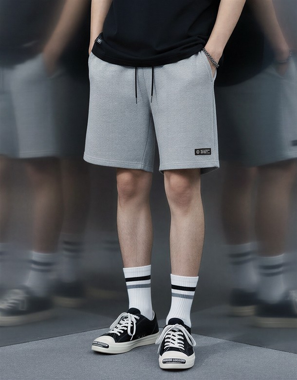 雙品牌字抽繩棉短褲