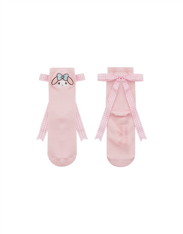 MIT 酷洛米格紋蝴蝶結襪子‧親子款(童)