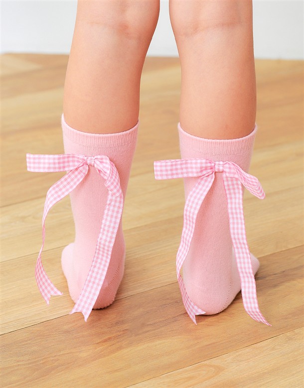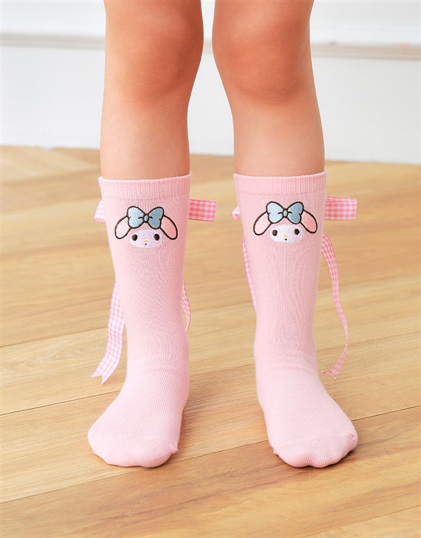 MIT 童裝-美樂蒂格紋蝴蝶結襪子