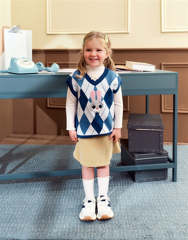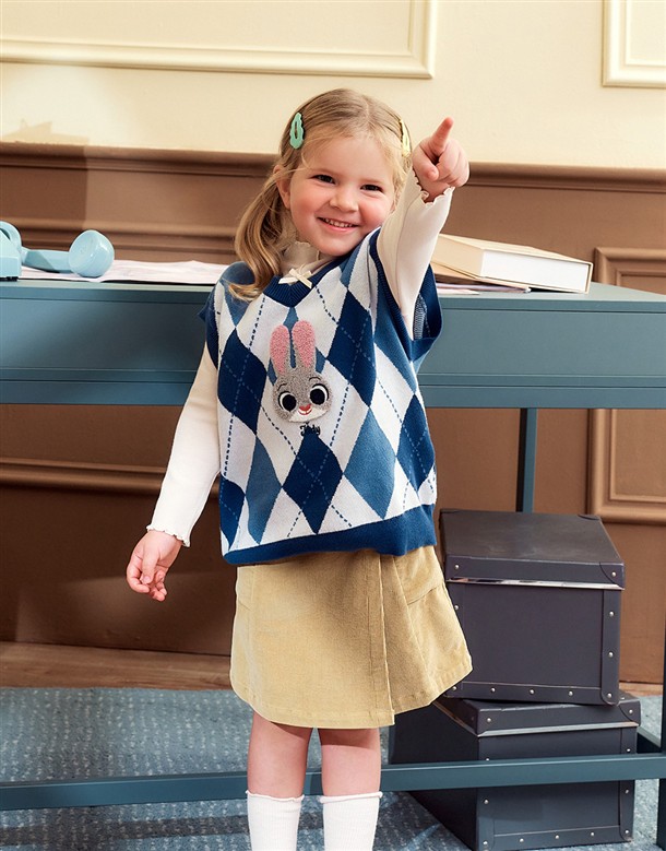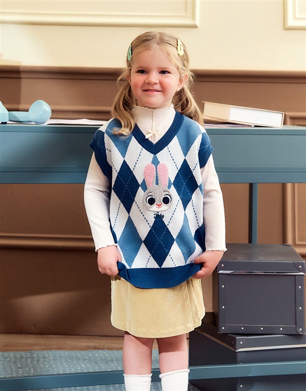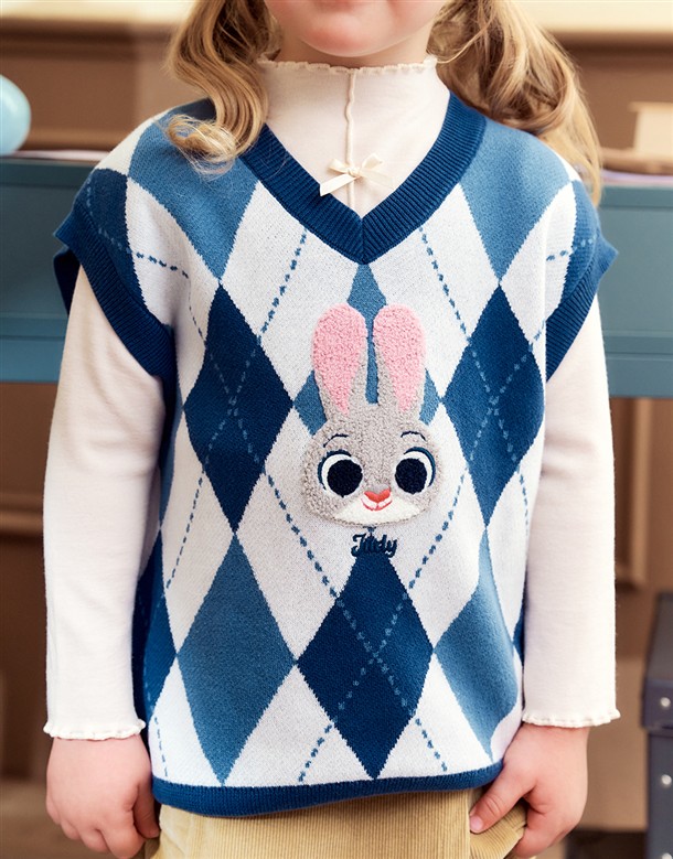 童裝-茱蒂菱格紋毛織背心