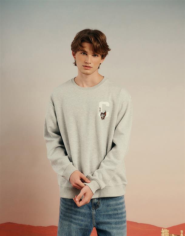 麂皮絨電繡字體大學T