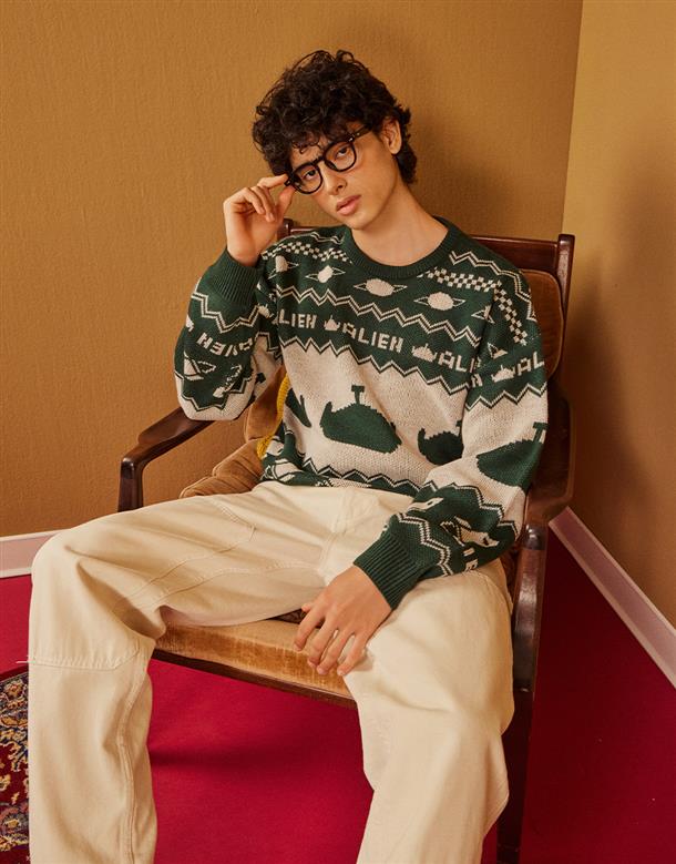 三眼怪滿版提花毛衣‧情侶款(男)