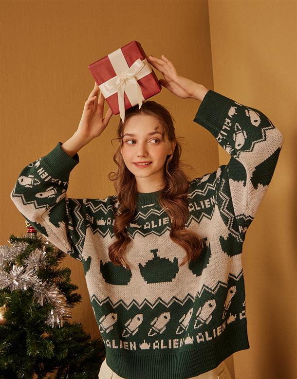 圖騰印花醜毛衣